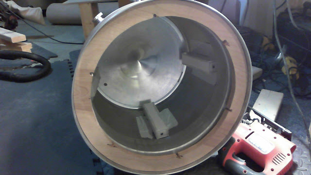 You can see the outer diameter is much too large, so I sanded the outer edge ALOT of times using a belt sander to get it to fit into the dome.