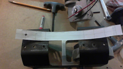 Worked on the other foot today. Not too bad, just alot of cutting. This time I got the EZlock Dremel and the metal cutoff wheel. Only went through 2 of them. I also used a template to make the holes in the top channel using a powerpoint file. I created the template and cut the first hole where I thought it should be placed. Then I placed the template on top to get the rest of the holes in alignment. The big square hole on the side of the foot was eyeballed and cut. Seemed OK.
