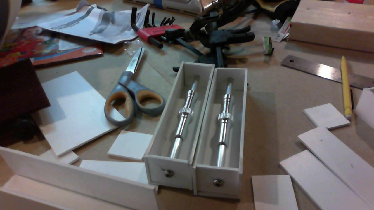 So from March 2016 to June 2016 I finished the build. I didn’t do too many log entries, but I did take some pictures. You’ll see them below. The rest of the build was to get the skins on, fit the greeblies with goop, epoxy or hot glue, and finish off some of the electronics. After painting all of the skins and head, I also made a “bad motivator” based off the e cigarette set used here: