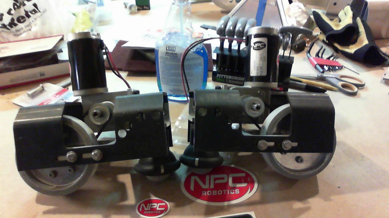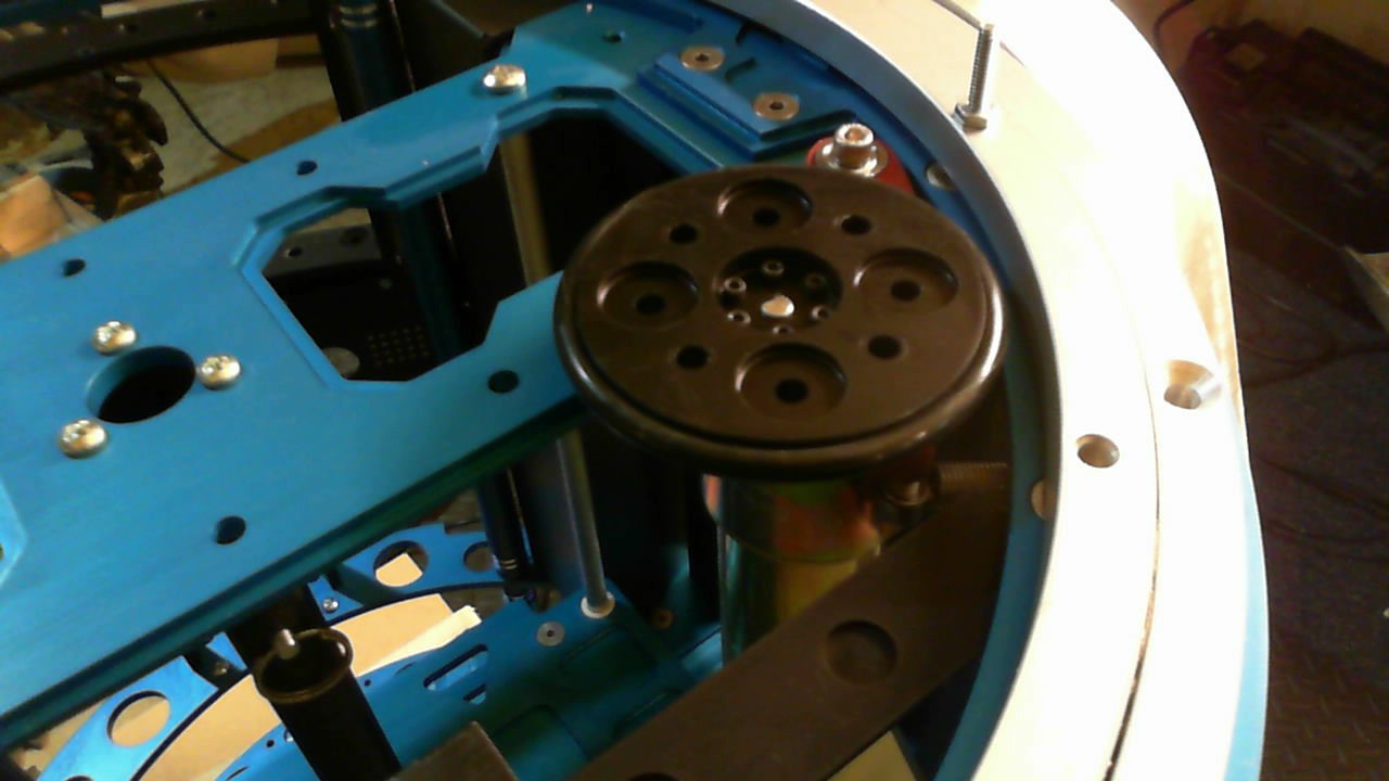 I also started to put together the mechanics of the foot drives. The foot drive frame is an old JAG frame which came with the wheels, pulley belt, and keyed gears. I got the NPC motors from the Robot Marketplace.com. I used to get all my old battlebot motors from there. These are much smaller and were much cheaper! 🙂