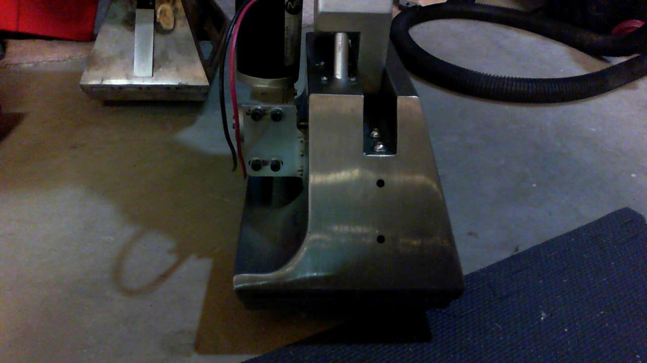 Worked on the other foot today. Not too bad, just alot of cutting. This time I got the EZlock Dremel and the metal cutoff wheel. Only went through 2 of them. I also used a template to make the holes in the top channel using a powerpoint file. I created the template and cut the first hole where I thought it should be placed. Then I placed the template on top to get the rest of the holes in alignment. The big square hole on the side of the foot was eyeballed and cut. Seemed OK.