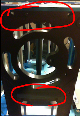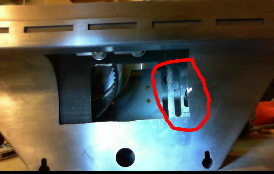 I also had to drill the holes in the top of the foot so that the foot drive could connect. I decided to mount the bracket as far back as possible so that the drive wheel had enough space to be pulled forward to create tension on the belt. This is a little risky since I’ve seen pictures of people that have replaced the omni ball with a caster, and the caster ends up catching on the lip of the foot. But I think it’s better to have the belt tension correct than have it loose. So sizing it up wit the rectangle hole I made, I realized I had to make the hole bigger. The red marking below shows the part that needs to be cut out so the motor mount has enough clearance.