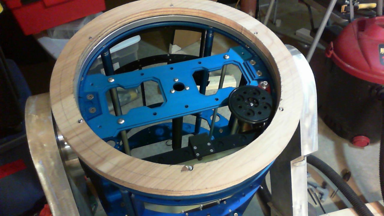 I don’t even know what this thing is called, so I’m calling it the wooden ring mount. It’s basically the interface between the rockler bearing and the dome, connecting the two so that when the rockler bearing turns, the dome turns. I saw my friends Bob and Kevin make one once, so I thought I’d make the same thing. The old JAG R5 dome that I got doesn’t have the connector ring, so I had to make one. The R2 dome I have, has one included. But since I’m making the R5 dome first, I thought I’d give it a shot.